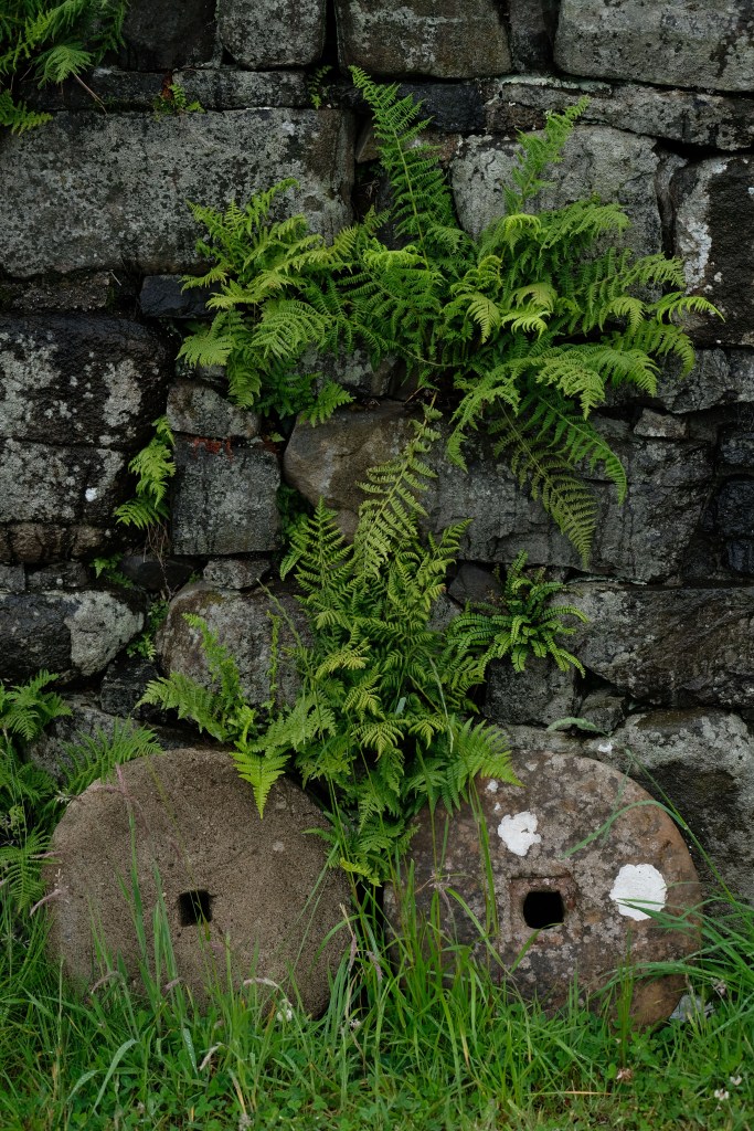 Scotland’s Western Isles are, at first glance, a paradise untouched by time – verdant vales, billion-year old volcanic bedrock plunging into the ocean, and perpetual rain evoke a primal past. Tourists seeking to get away from the cramped hustle of urban life find in the openness of the bucolic heather-sprinkled landscape an embodiment of a simpler era and harmony with nature. But looking closely suggests the Highland idyll, like all Paradise, is also created. Even before the industrial revolution and cultural displacement remade life here, people altered the unforgiving landscape, connecting the past and future. So we see Neolithic quernstones unearthed during the building of a Gaelic school that now houses Jurassic fossils. We read that almost all of Scotland’s virgin forests have been felled and wonder if a treeless moor reflects native acidic soil, deforestation, or unchecked red deer whose predators – wolves and bears – were hunted to extinction centuries ago.