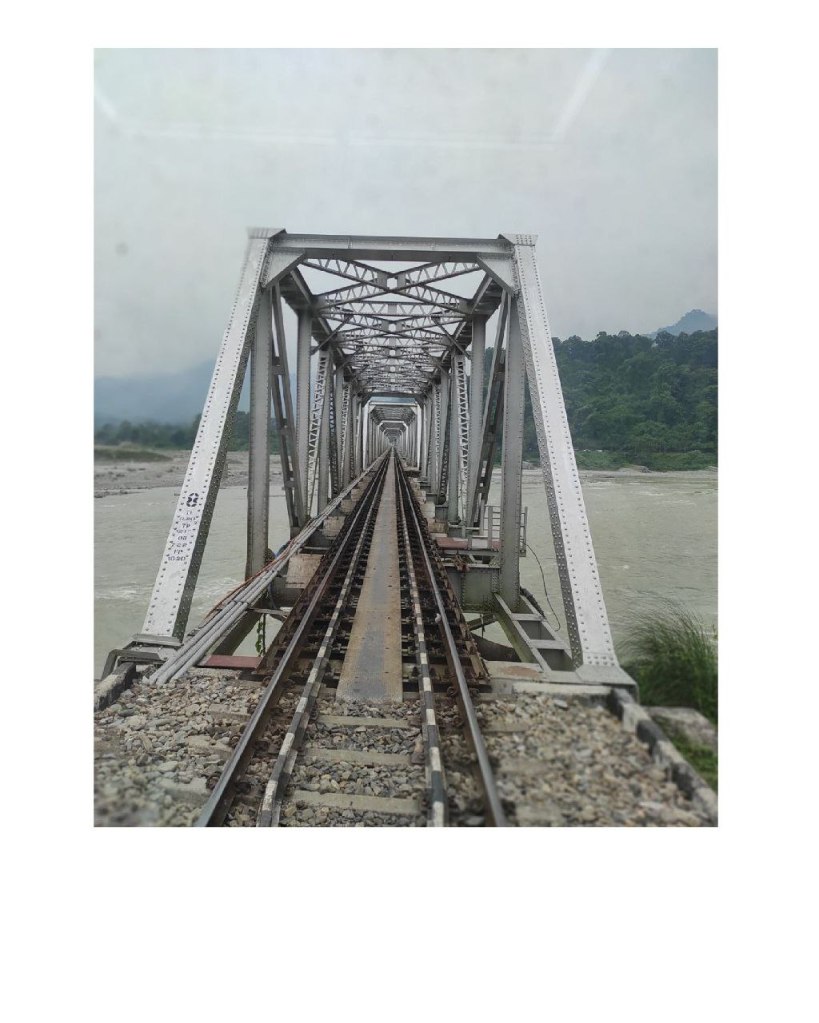 Are symmetry and fluidity at conflict with each other? Boxes and lines and angled corners all perfect to T. As she looks around herself, boxed and formulaic beauty plays in abundance. Among Triangle-ed eyebrows and contoured cheeks, highlighted Cupid ’s bow, jawline and beauty bones, she considers herself to be a misfit. She reaches out for her curves and feels the tenderness that’s unknown to the world. Her mind’s symmetry gives way to fluidity. Angles become rounded and straight lines, malleable. She looks softly and places her eyes on the confluence of the free flowing Teesta and the rail bridge over it.